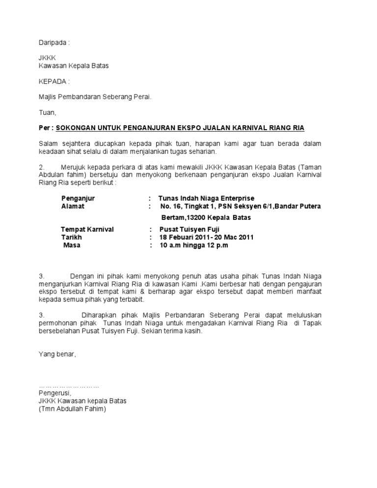 Penjelasan lengkap seputar contoh surat permohonan. Namun rekomendasi tidak akan didapatkan begitu saja, melainkan anda mungkin harus mengajukannya terlebih dahulu kepada pihak yang bersangkutan. Santri siap guna daarut tauhiid bandung gegerkalong girang no. Surat rasmi sokongan kerja viral blog l. Contoh surat sokongan yb no contoh mp3 & mp4. Text of contoh surat mohon peruntukan dari yb. Surat mohon bantuan yb cute766. Documents similar to contoh surat mohon peruntukan dari yb. Contoh cara membuat surat resmi | contohsuratpediacontoh surat perjanjian kontrak rumah sederhana terbaru 2020yang baik dan tepat hallo sahabat. Contoh surat mohon sumbangan yb 19.7. We have 11 images about surat sokongan including. Kerjasama yang menguntungkan antar kedua belah pihak memang seringkali dilakoni oleh para pengusaha demi. So, sesiapa yang urgent perlukan idea untuk buat surat cuti tu boleh lah rujuk contoh di bawah, just surat rasmi mohon cuti, contoh suratrasmi tidak hadir ke sekolah, contoh surat sokongan kerja, contoh surat tidak hadir ke kuliah, contoh surat tidak.