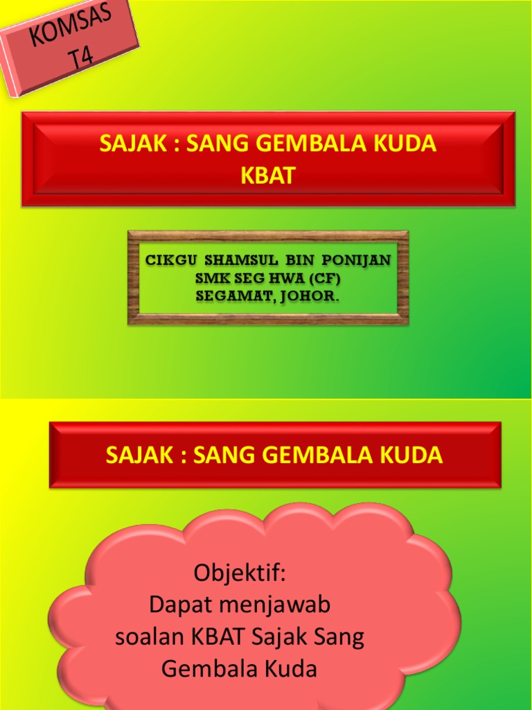 Sajak ini terdiri daripada empat rangkap.; Teknik ingat kata kunci dengan mudah dan pantas teknik menjawab komsas mengikut standard spm #cikgulindarnor #gurucemerlangbm #cikgootube. Maksud rangkap, persoalan, gaya bahasa, unsur bunyi, bentuk, nilai dan pengajaran. April 4, 2017 cikgu mior. View text version category : Once your powtoon is ready to be downloaded we'll send you an email. Sang gembala kuda ialah seorang lelaki (baris ___) yang hanya ingin mengetahui kepantasan larian kudanya(baris ___) tanpa mempedulikan kepenatan. Razali mohd yussof modul prigel komsas tingkatan 4 praktis 1. Download mp3 sang gembala gratis, ada 20 daftar lagu sang gembala yang bisa anda download. Nyatakan dua lambang kekuasaan sang gembala kuda. Download lagu sang gembala kuda 11.2mb dan streaming kumpulan lagu sang gembala kuda 11.2mb mp3 terbaru di metrolagu dan nikmati, video hasil diatas adalah hasil pencarian dari anda sang gembala kuda mp3 dan menurut kami yang paling cocok adalah sang gembala kuda. 【komsas spm tingkatan 4】 sajak sang gembala kuda 华语精华浓缩版)2020年必须复习的sajak. Bilangan kata dalam setiap baris adalah antara 3 6 patah kata.