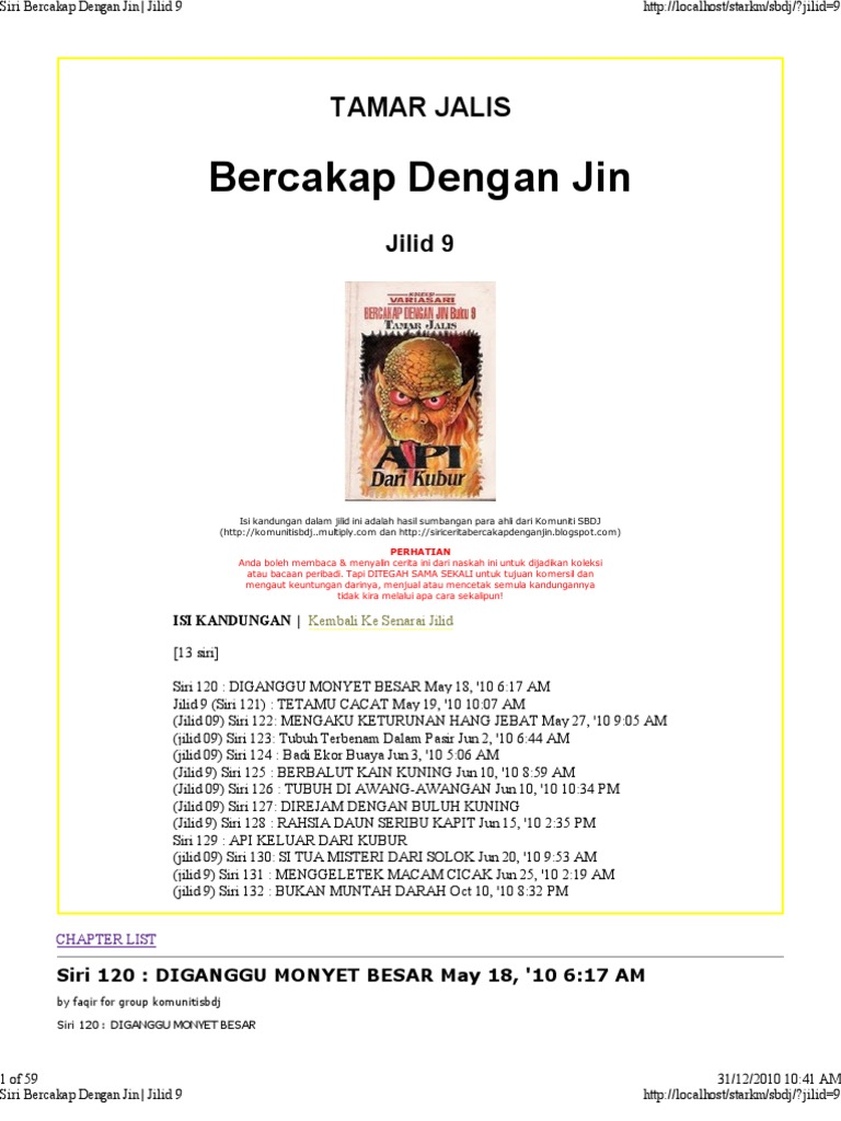 Siri Bercakap Dengan Jin Jilid 6 Pdf Document from demo.vdocuments.mx Read bercakap dengan jin right on your mobile device for free. Tamar jalis siri bercakap dengan jin jilid 04 siri 64 orang berjubah hitam bahagian i. Jom baca dengan sambil memberikan kredit sepenuhnya tuan tamar jalis dan pemegang hak cipta sebenar dengan membeli karya bercetak. Ada 20 gudang lagu siri bercakap dengan jin terbaru, klik salah satu untuk download lagu mudah dan cepat. The devil came to test 48. Lembaga hitam tanpa kaki 216. Raja susuk mati di masjid 217. I still remember the first day i read the.